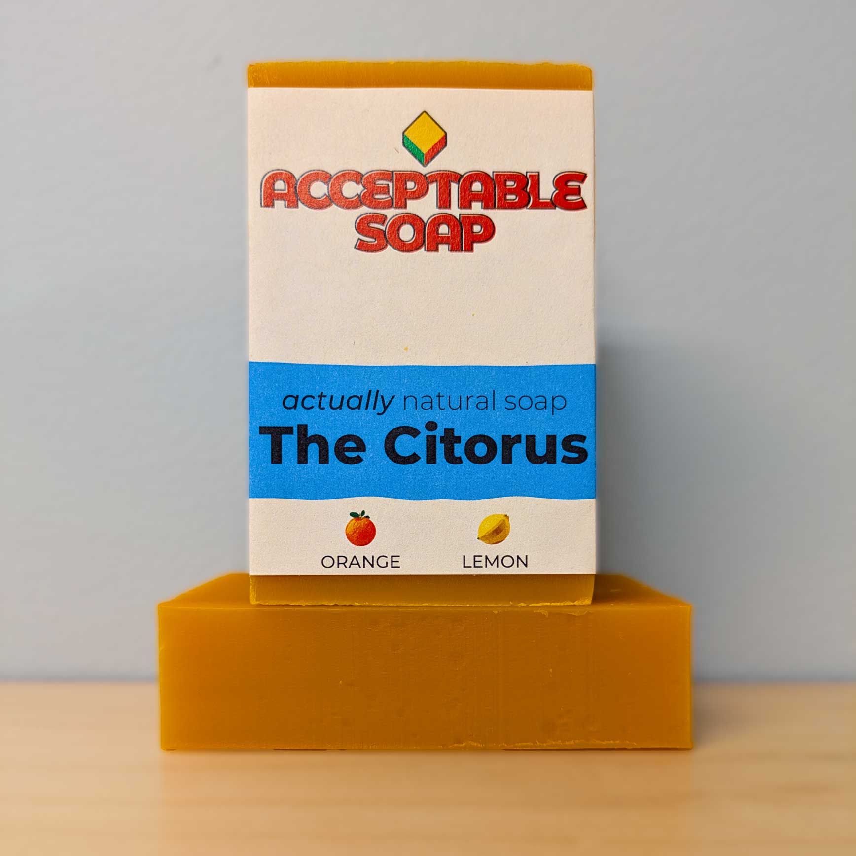 It's a bar of soap. Its rectangular. This one's orange. There's none of that stupid textured top bullshit. You use it to clean yourself you disgusting shit-heel. It weighs about 4.1 ounces, it's like 2.25 inches tall, 3.5 inches wide, and 1 inch thick.